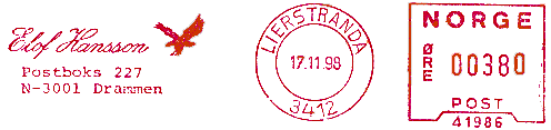 Frankeringsmaskinen er også brukt i DRAMMEN med samme reklame